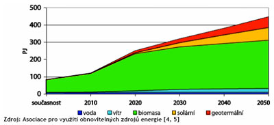 Obrázek 3: Primární energie z obnovitelných zdrojů - výhled do r. 2050